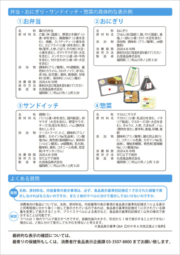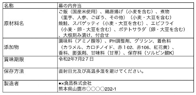 弁当・惣菜の食品表示の基本表示事項
