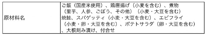 省略されるおかず類に含まれるアレルゲン、添加物は省略ができません。必ず抜粋して表示します。