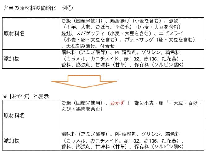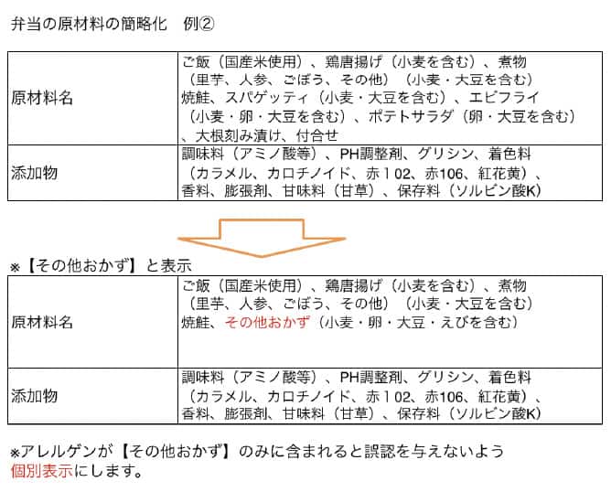 弁当外部から見て原材料が分かる場合は簡素化することができます。
